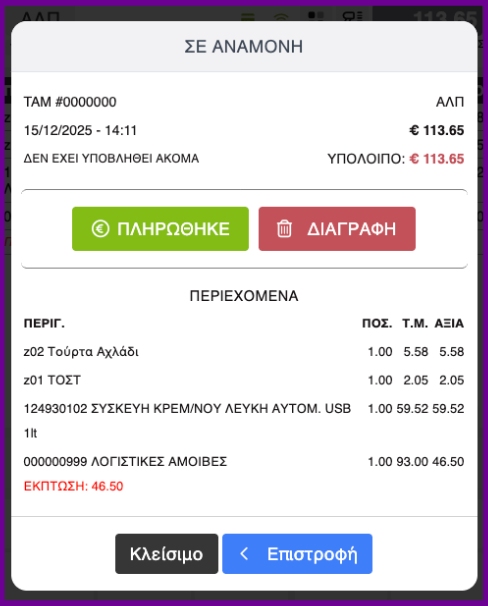 Προστέθηκε η δυνατότητα διαχείρισης παραστατικών σε αναμονή απευθείας μέσα από την ταμειακή.